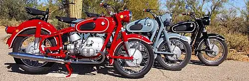 In the United States, all these Earles-fork and US-fork (i.e., telescopic fork) models from 1955 to 1969 are often lumped together as "Slash-2" BMWs, even though that is technically incorrect. Not all of them, as seen above, have the "/2" designation.