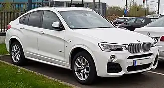 The BMW X4 is a compact luxury crossover SUV manufactured by BMW since 2014. It is marketed as a sports activity coupé (SAC),[1] the second model from BMW marketed as such after the X6, and features styling elements and the roofline of a traditional two-door coupé.[2] The X4 is widely considered as a "coupé" version of the X3, trading its practicality with a sloping rear roof which offers a sportier styling.[3][4] BMW has indicated 2025 will be the X4's final model year.[5]