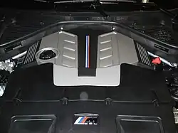 The BMW X5 M is the first xDrive all-wheel-drive vehicle from M GmbH along with the X6 M. The M offers the same utility as the regular X5, with the addition of the V8 M TwinPower Turbo, a twin-turbocharged 4.4-liter V8 delivering 547 bhp (408 kW; 555 PS) at 5,750 rpm and peak torque of 501.2 lb⋅ft (680 N⋅m), available between 1,500 and 5,650 rpm. The S63 engine is a high output variation of the N63 power unit.
