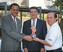 NASA also instated the BONZZO Award, a pint-size BONZZO statue that will be given annually to the individual who makes the biggest contribution to NASA's Hispanic program. On October 12, 2000, Charles H. Scales, the director of Equal Opportunity at NASA's Marshall Space Flight Center, was the first recipient of this award: the statue was signed by Marshall Center Director Art Stephenson, Puerto Rican Gov. Pedro Rosselló and John Rivas,[6] who donated the statue to honor the work of Hispanics at the Marshall Center.[7] “Charles is an excellent choice for this first award,” said Elia Ordonez, Hispanic Employment Program manager at the Marshall Center. “He has contributed much to the quality of life in our community and, in particular, the Hispanic community at Marshall.”[7][8]