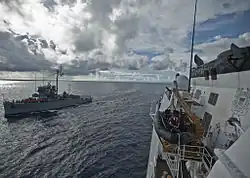 She initially served the Philippine Navy as RPS Miguel Malvar (PS-19) until she was renamed to BRP Miguel Malvar effective 23 June 1980.[8] Between 1990 and 1992 the Miguel Malvar underwent major overhaul, weapons and radar systems refit, and upgrade of communications gear. She was assigned with the Patrol Force of the Philippine Fleet, and is considered as one of the most decorated ship of the Navy.[9][10]