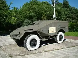 • BTR-40 converted into an armoured car armed with a medium machine gun in a cube-shaped turret on top of the superstructure inside the troop compartment. It also has four smoke grenade launchers on both sides of the hull.