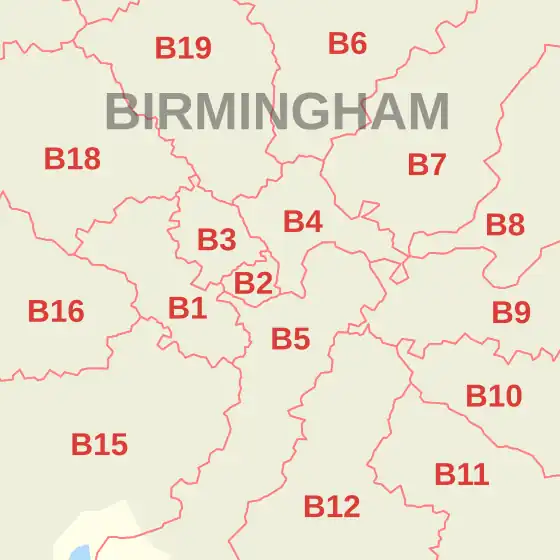 | B16 | BIRMINGHAM | Ladywood, Edgbaston, Rotton Park | Birmingham |