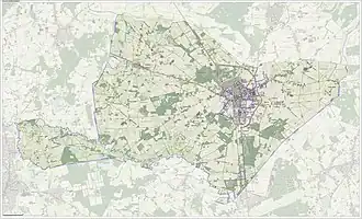 Baarle-Nassau (Dutch pronunciation: [ˌbaːrlə ˈnɑsʌu] ⓘ) is a municipality and town in the southern Netherlands, located in the province of North Brabant. It had a population of 6,899 in 2019. The town is the site of a complicated borderline between Belgium and the Netherlands: it encloses 22 small exclaves of the Belgian town Baarle-Hertog, of which the two largest contain seven counter-enclaves of Baarle-Nassau, and the main body of Belgium contains another.
