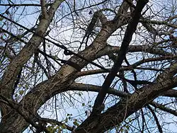 Over time, the trunk of the poplar has remained uniform and well-preserved. At a height of approximately four meters, it is divided into three large branches, creating a round crown. Today, only one of these branches remains, leading to the irregular appearance of the crown. The previous branch breakouts have also caused the trunk to open.[26] In 2004, the crown expanded in size from 14 to 19 meters. However, due to several branch breakouts, the height of the tree has been reduced to 17.3 meters.[18]