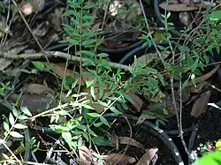 Backhousia oligantha is a rare species of plant in the family Myrtaceae. Mostly found in south eastern Queensland. The small tree has an unusual growth habit, with colonies of many prostrate shoots and many stems from one genotype. At the type location, there are 100 to 200 stems in six clumps, possibly with only six unique individuals. The epithet oligantha is derived from the Greek language, meaning 'few flowers'.[1][2]