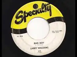 "Bad Boy" is a song written and recorded by American R&B musician Larry Williams. Specialty Records released it as a single in 1958,[1] but it failed to reach the U.S. Billboard charts. However, music journalist Stephen Thomas Erlewine calls it one of Williams's "genuine rock & roll classics" and notes its popularity among 1960s British Invasion groups, such as the Beatles.[2]