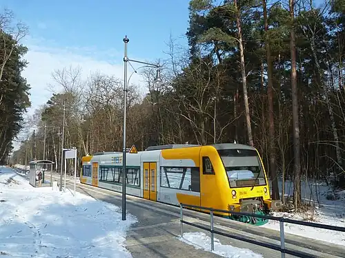 Bad Saarow Klinikum station is a railway station in the municipality of Bad Saarow in the district Oder-Spree of Brandenburg. It is served by the line RB 35.