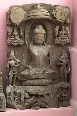 - Nearly 50 cm high, brown-colored idol of Bhagawan Adinath Chaubisi on one stone in the Kayotsarga posture.
