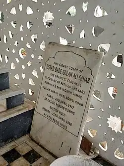 9. ^ "Ustad Bade Ghulam Ali Khan's tomb restored". The Times of India. 3 April 2021. ISSN 0971-8257. Retrieved 4 May 2023.
