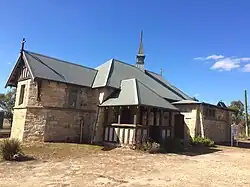 St. Peter's Church was built in 1922 as a memorial to John Campbell Warren, the son of a local farming family who was killed during World War I. The Warren family had settled the area in 1897. The stone used to build the church was quarried at the Warren's property and it was constructed by the local community. The remains are now heritage listed.[4]