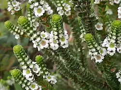Heath myrtle was first formally described in 1788 by Joseph Gaertner who gave it the name Jungia imbricata in De Fructibus et Seminibus Plantarum.[4][5] In 1917, George Claridge Druce changed the name to Baeckea imbricata in the supplement to The Botanical Exchange Club and Society of the British Isles Report for 1916.[6][7] The specific epithet (imbricata) means "overlapping".[8]