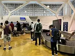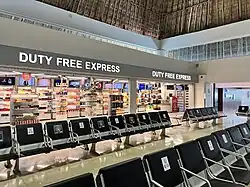 The passenger terminal houses both arrival and departure facilities for domestic and international flights within a single-story building spanning 8,132 square metres (87,530 sq ft). The terminal's distinctive architecture features a series of thatched roof structures crafted from dried palm leaves, known as Palapas, a traditional construction technique frequently seen on Mexican beaches. The terminal has eight gates, a VIP lounge,[4] dining options, duty-free shops, parking areas, car rental services, various retail stores, and a bus terminal for shuttle services and airport transfers to tourist resorts in the region.