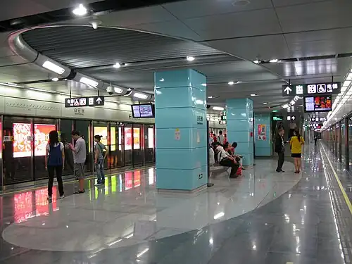 Baishizhou station (Chinese: 白石洲站; pinyin: Báishízhōu Zhàn; Jyutping: Baak6 Sek6 Zau1 Zaam6) is a station of Line 1 and Line 20 (Phase 2, under planning) of Shenzhen Metro. It opened on 28 September 2009.[1] It is located at the underground of the intersections of Shennan Dadao (Chinese: 深南大道) and Shahe Road (Chinese: 沙河路),[2] in Baishizhou, Nanshan District, Shenzhen, China.