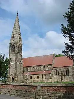 Several notable buildings in the village were commissioned by Viscount Downe of Baldersby Park and designed by William Butterfield in the 1850s. The Church of St James and its lychgate are both Grade I listed,[1][2] and The Old Parsonage and the former Baldersby St James Primary School are both Grade II* listed.[3][4]