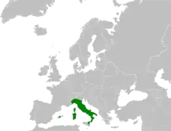 The Balearic green toad, in spite of the name, this species is native to Italy (where it is present on all territories except for the extreme north-east, south-east and south-west) and Corsica.[1] It was probably introduced to the Balearic Islands in prehistoric times,[2] where it is common but declining.[1] Its formerly extended into Switzerland and there have been (so far) unsuccessful reintroduction attempts in that country.[3] Its range meets that of the similar and closely related European green toad (B. viridis) in far northeastern Italy and that of the Sicilian green toad (B. boulengeri siculus) in easternmost Sicily.[3][4] This species appears to have been introduced, either accidentally or deliberately, to the Balearic Islands from Sardinia and Corsica, probably in the Bronze Age.[5]