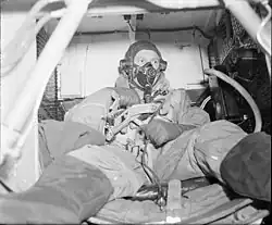 The service also carried other passengers, one of the most notable being Danish physicist, Niels Bohr, who was flown from Sweden to Britain in a Mosquito in 1943, while in the same year, George Binney, the organiser of blockade-running operations was flown into Sweden in the same type. The Mosquito lacked any provision for passengers, who had to be carried in the aircraft's bomb bay, where they were only able to communicate with the pilot by pulling on a piece of string.[4]