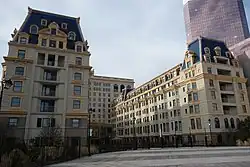 The Marlborough House was built in 1900 by Josiah White III between Ohio Avenue and Park Place on the Boardwalk, in the Queen Anne style.[3] White expanded the successful resort in 1905, hiring Philadelphia architect William Lightfoot Price of Price and McLanahan to design a new, separate wing, built entirely of concrete, which opened in 1906 as the Blenheim.[4][5] The hotel was then renamed the Marlborough-Blenheim.