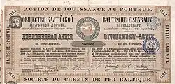 ![]() A share certificate of 125 rubles of the Baltic Railway Company from 1875 | |