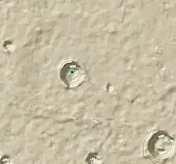 Bam is an impact crater located on the lava plains of Hesperia Planum (Mare Tyrrhenum quadrangle) on Mars at 25.79 ° S and 115.67° E, approximately 6.8 kilometers in diameter. It was named after a city in the Kerman province of Iran, having had its name approved in April 2017.[1]