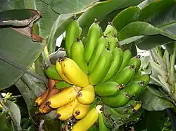 In 1941, the first bananas in Iceland were produced.[1][2] They have been produced since that time, about 100 clusters a year each weighing about 5–20 kg (11–44 lb), but are not currently sold.[3] In the wake of World War II, the combination of inexpensive geothermal power (which had recently become available) and high prices for imported fruit led to the construction of a number of greenhouses where bananas were produced commercially from 1945[4] to as late as 1958[5] or 1959.[6] In 1960, the government removed import duties on fruit.[7] Domestically grown bananas were no longer able to compete with imported ones and soon disappeared from the market. Icelandic banana production was much slower due to low levels of sunlight; Icelandic bananas took two years to mature, while it only takes a few months near the equator.[8]