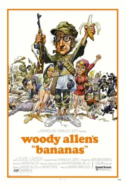 Bananas is a 1971 American comedy film directed by Woody Allen and starring Allen, Louise Lasser, and Carlos Montalbán. Written by Allen and Mickey Rose, the film is about a bumbling New Yorker who, after being dumped by his activist girlfriend, travels to a tiny Latin American nation and becomes involved in its latest revolution.[1] Parts of the plot are based on the book Don Quixote, U.S.A. by Richard P. Powell.[2]