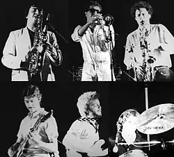Band Aid was formed in 1980 in Lecce by Toni Robertini, Giacomo Toriano (Mino), Francesco Nemola (Frank), Felice De Donno, Roberto Gagliardi and Paolo Cesano. It was previously named La Mela d'Oro, a group which in 1976 had already elaborated Mediterranean Jazz with elements of popular music of Salento.[1] The group was influenced by Canterbury scene, no wave, Frank Zappa and free jazz. They produced their own instrumental compositions except during the last period when the American singer Arthur Miles joined the band.