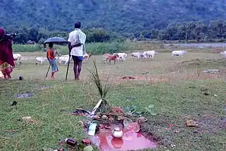 ![]() Bagal with their cattle in the place shrine for Goth puja. | |