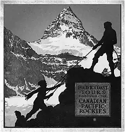 Early on, Banff was popular with wealthy European and American tourists, the former of which arrived in Canada via trans-Atlantic luxury liner and continued westward on the railroad.[12] Some visitors participated in mountaineering activities, often hiring local guides. Guides Jim and Bill Brewster founded one of the first outfitters in Banff.[14] From 1906, the Alpine Club of Canada organized climbs, hikes and camps in the park.[15]