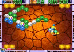 Bang Bang Ball is an arcade game released by Banpresto in 1996.[1] Skateboarding mice must throw colored balls against clusters of moving balls, while avoiding being hit by any of the balls. A thrown ball hitting one or more balls of the same colour causes them to disappear. Special balls have special effects such as exploding nearby balls or temporarily immobilizing the balls.