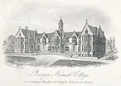 The Normal College, Bangor (Welsh: Y Coleg Normal) was an independent teacher training college, founded in 1858.[1] It was created through the efforts of the British and Foreign School Society and the educator Sir Hugh Owen, and was funded by £11,000 raised through subscription and £2,000 of Government money. Teaching began on temporary premises in January 1858 and the College opened on its permanent site in 1862.[1] In 1979 it changed its name to Y Coleg Normal, Bangor or in English: The Normal College, Bangor. In 1996 it became part of University College of North Wales (now Bangor University).