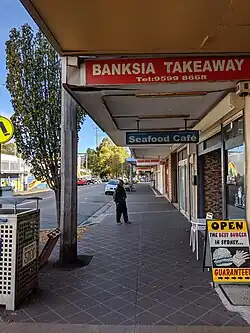 Banksia is mainly residential with a few commercial developments. It features mostly low density houses and some medium density blocks of flats. Banksia shopping centre consists of a small group of shops on Railway Street beside Banksia railway station. It includes Banksia Bakery, a take-away shop, a convenience store, chemist, Australia Post and a number of hairdressers.