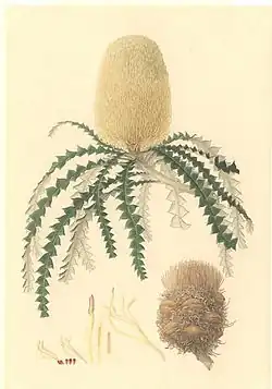 - ^ a b Hooker, William J., ed. (1831). "Banksia Speciosa. Handsome Banksia". Curtis's Botanical Magazine. 58: 3052. Archived from the original on 14 May 2016. Retrieved 23 October 2015.