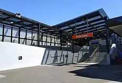 As part of the project, Bankstown station will be upgraded to have an additional at-grade station entrance at the eastern end of the existing platforms, which will align with The Appian Way and Restwell Street.[9] The new entrance will also provide access to Sydney Metro platforms, which will be built east of the new entrance over the road connection between North and South Terraces. The existing station entrance has be retained and the existing platforms is proposed to be retained and extended westwards. The former parcels office, as well as a crossover at the eastern end of the station, have been removed for construction.[10]