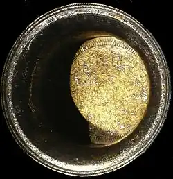 On 17 January 1793, the Baptistery was sent to the deposit of Petits-Augustins before entering the museum nine days later.[5] Replaced in 1818 at Vincennes, by order of the king, it returned to the Louvre in 1852, after a decree of Louis Napoleon Bonaparte stating that "all objects that belonged to the rulers who ruled France would be sought, gathered and placed in the Palace of the Louvre."[6] It left the museum temporarily in 1856 to serve in Notre Dame at the baptismal ceremony of Prince Napoleon Eugene; this is the last time this basin was used as a baptismal object.[6]