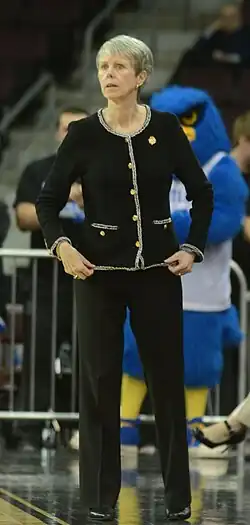 Barbara Stevens (born September 20, 1954)[1] is the former head coach of the Bentley University women's basketball team. Stevens had previously served as head basketball coach for Clark University and Massachusetts. Stevens was inducted into the Women's Basketball Hall of Fame in 2006. She was elected to the Naismith Memorial Basketball Hall of Fame in 2020.[2]