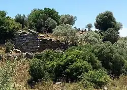 There are currently reasonably extensive ruins at Bargylia, including the remnants of a temple, a theatre, a large defensive wall and a palaestra.