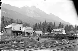 The towns in the Skykomish River valley were established based on the railway and the roads built to cross the Cascade Mountains at Stevens Pass. In the late 19th century during the expansion of the Great Northern Railway, the railway's chief locating engineer, John F. Stevens, surveyed the area and identified Stevens Pass as the ideal route for crossing the North Cascades. The first train passed through in June 1893. Early road development in the area included the Skykomish Tote Road, connecting towns along the rail line, which can be seen in photographs and maps from the late 19th and early 20th centuries.[6]