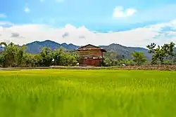 The name "Bario" comes from Kelabit language and means "wind". It is also known as the "land of a hundred handshakes" as to depict the hospitality of the local people.[5] W. M. Toynbee, a Canadian schoolteacher, also the group headmaster of seven primary schools at Kelabit Highlands from 1963 to 1965,[8] referred to Bario as "Shangri-La" (paradise).[9]