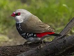 Stagonopleura guttata diamond firetail nt - near threatened in Victoria listed as threatened in Victoria bird