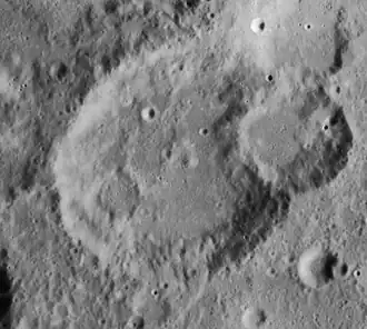Barocius is an ancient lunar impact crater that is located in the rugged southern highlands of the Moon. It was named after Italian mathematician Francesco Barozzi.[1] It lies just to the southeast of the large crater Maurolycus. To the southwest of Barocius is Clairaut, and to the south-southeast lies Breislak.