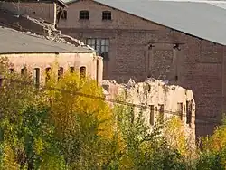 Portions of the factory complex have survived. Notably, the main production building constructed in 1890 to the designs of Edward Ferdinand Bergenheim remains intact.[13] Prior to the full-scale invasion, the building was partially used as a construction materials store. It features brick-style architecture with elements of neoclassicism. The facade remains unplastered, with brick surrounds, cornices, and pediments—some of which were lost during the Soviet period. Several secondary buildings also survive and are currently used as warehouses and retail spaces.