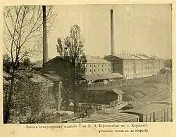 The Baron Bergenheim Ceramic and Terracotta Factory, known since 1891 as the Society for the Production of Fireproof Bricks and Pottery of Baron E. E. Bergenheim, was a former industrial enterprise and recently recognized cultural heritage site located in the Zalopan district of central Kharkiv, Ukraine. It was founded in 1876 by engineer and Baron of the Grand Duchy of Finland, Edward Ferdinand Bergenheim, son of Archbishop Edward Bergenheim, head of the Evangelical Lutheran Church of Finland.[1][2] The present-day factory buildings, recently listed as immovable cultural heritage sites of Ukraine, were constructed in 1890 based on the designs of the factory's owner himself.[1][3] On Mala Panasivska Street stands the factory's income-generating apartment building, likely constructed in 1912.[4]