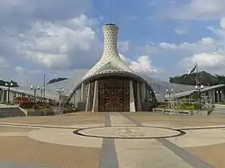 Barquisimeto Cathedral (Catedral Metropolitana de Barquisimeto) is a Roman Catholic cathedral in Barquisimeto, Venezuela. It is one of the most modern cathedrals in Latin America, considered original in style. Designed by Jan Bergkamp, it was his first major project. Its exterior shape is an upside down flower, with a bell tower external to the building. It is located on Avenida Venezuela between Avenida Simón Rodríguez and Calle 30. Considered to be advanced engineering for its time, it was completed in 1968. This unconventionally-shaped cathedral is a hyperbolic paraboloid with two wings connected by a central tower. It required extensive structural precision. The cathedral ceiling consists of acrylic panels supported by a network of steel wires.