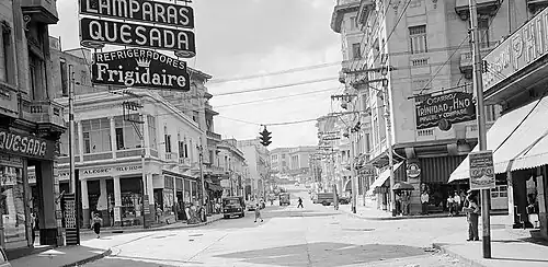 In the late 1950s, the Batista government bought the building and demolished it with the intention of building the headquarters of the National Bank of Cuba.[9] In a speech, Fidel Castro states: "We have always seen a building under construction here. This building (bank building) is an inheritance. We inherited this building at the time of the victory of the revolution. A building for the national bank was being built."[10] However, a photograph published in Havana in January 1959 showing Castro's son Fidelito riding on top of a tank contradicts this statement as the Beneficiensa building can be seen on the left background of the photo.