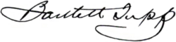 Following law school, Tripp practiced law, first in Maine and then in Yankton with his half-brother William, who had been appointed as a Surveyor General for Dakota Territory.[5] He was active in Democratic Party politics, serving as Dakota Territory party chairman,[6] delegate to the national convention in 1872 and 1892, and in 1878 the Democratic candidate for the Territory's delegate in Congress.[7] Bartlett was part of a commission that codified the laws of the territory in 1877 and again in 1903,[8] and served as president of an 1883 Constitutional Convention of for Statehood of South Dakota. From 1885 to 1889 he served as chief justice of the Dakota Territory Supreme Court.