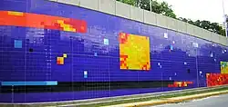 Mural Jardín Lumínico, ceramic tiles mural by Patricia van Dalen on Prados del Este Highway.