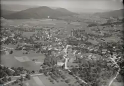 During the Middle Ages, the number of farms decreased from 40 in 1328 to only 16 in 1433, only to double again from 1470 to 1550. After that village population, land use and number of farms remained stable until 1800. In 1800, the number of farms rose sharply. Large forests also favored the expansion of the woodworking industry. In 1900, an embroidery factory and a brickyard offered some jobs, but the village retained a strong farming village character until around 1970. Since then, agricultural amelioration (mostly, relocation of fruit orchards) and a strong population growth has led to changes in the appearance and character of the village.[2]
