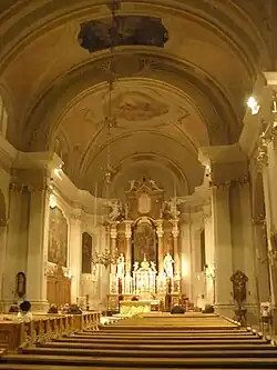 Basilica Minore dei Santi Filippo e Giacomo is a Catholic basilica located in Cortina d'Ampezzo, Italy. It is dedicated to the Apostles Philip and James, patron saint of Cortina d'Ampezzo. It is the home of the parish and the deanery of Cortina d'Ampezzo. Built between 1769 and 1775 in the Baroque style to a design by the architect Joseph Promperg, it sits on the site where two previous churches had existed from the 13th and 16th centuries.