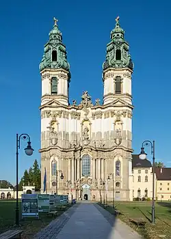 Basilica of the Assumption of the Blessed Virgin Mary in Krzeszów (Polish: Bazylika Wniebowzięcia NMP w Krzeszowie) is a Roman Catholic church located within the abbey of the Order of Saint Benedict in Krzeszów, Poland. Built in 1728–1735, it is a notable Baroque church in Lower Silesia and a shrine to the Virgin Mary, listed as a Historic Monument of Poland.[1] It is a basilica since 1998.